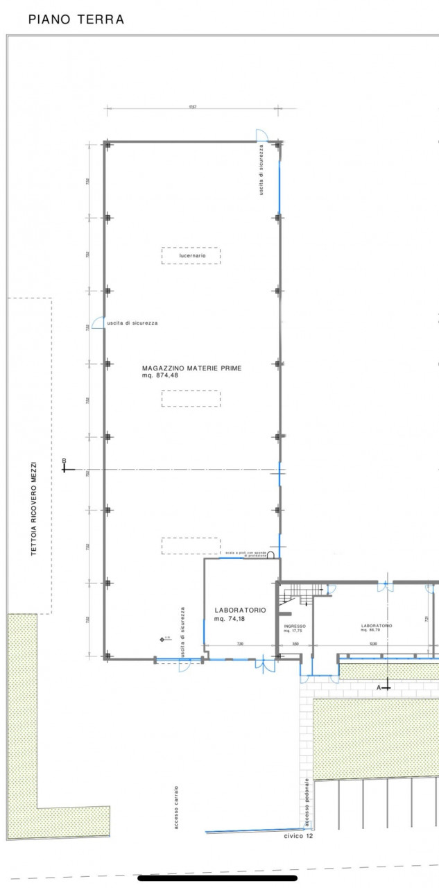 Il capannone è caratterizzato da dimensioni generose di circa 50 metri di profondità per 20 metri di larghezza più uffici e bagni ben strutturati sviluppati su 2 piani. La proprietà viene venduta con impianti autonomi a norma e offre un'altezza sotto trave pari a 6,10 m, garantendo così ampi spazi per qualsiasi tipo di stoccaggio materiale. E' dotato di un anello tagliafuoco con vasca di raccolta delle acque, inoltre è presente una tettoia esterna nel lato ovest del capannone ideale per il parcheggio dei veicoli dei dipendenti o fornitori.